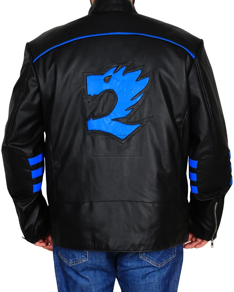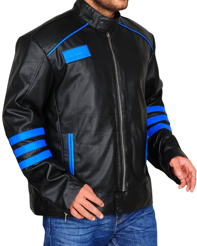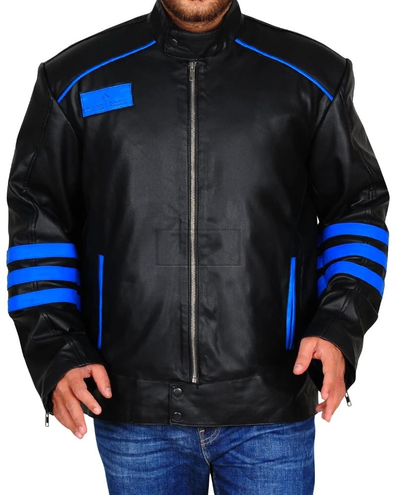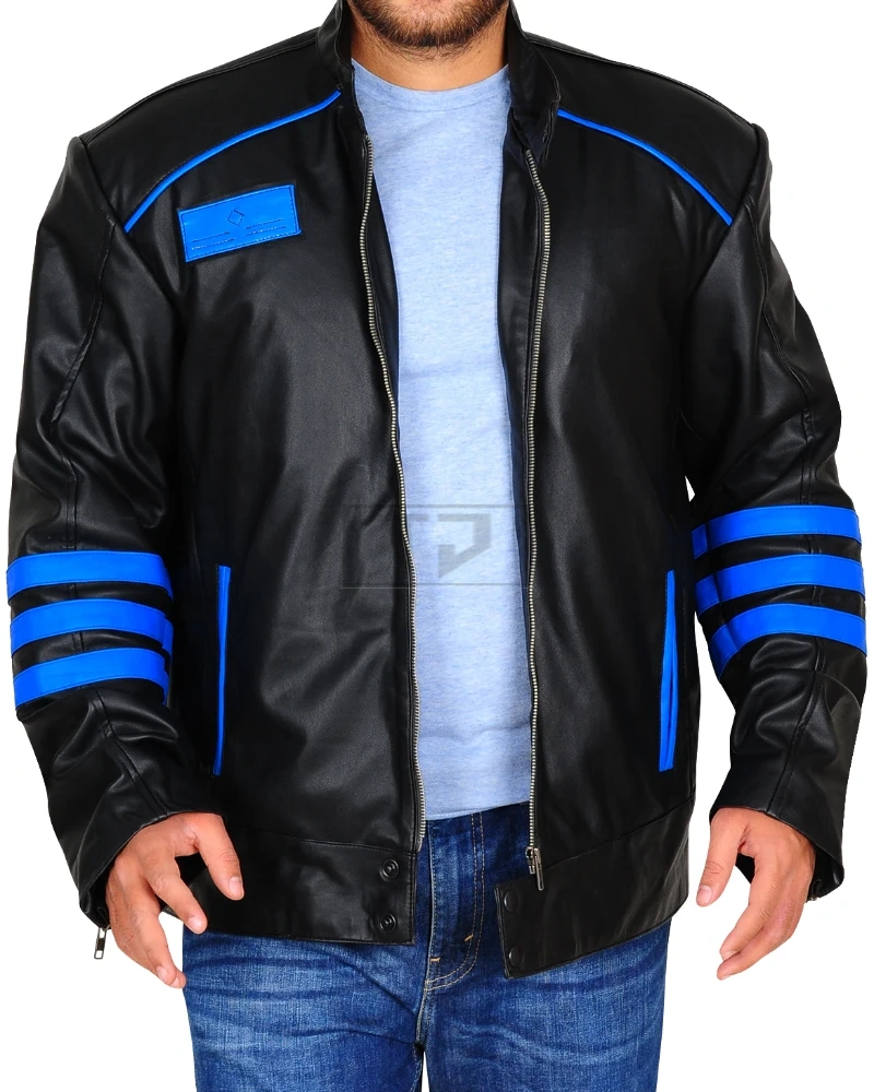 Black & Blue Biker Leather Jacket