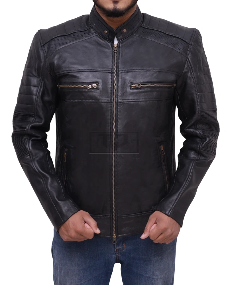 Black Cafe Racer Biker Jacket