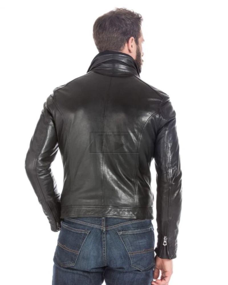 Black Lambskin Leather Sports Jacket For Men - image 3