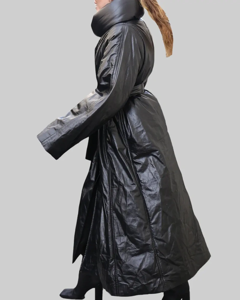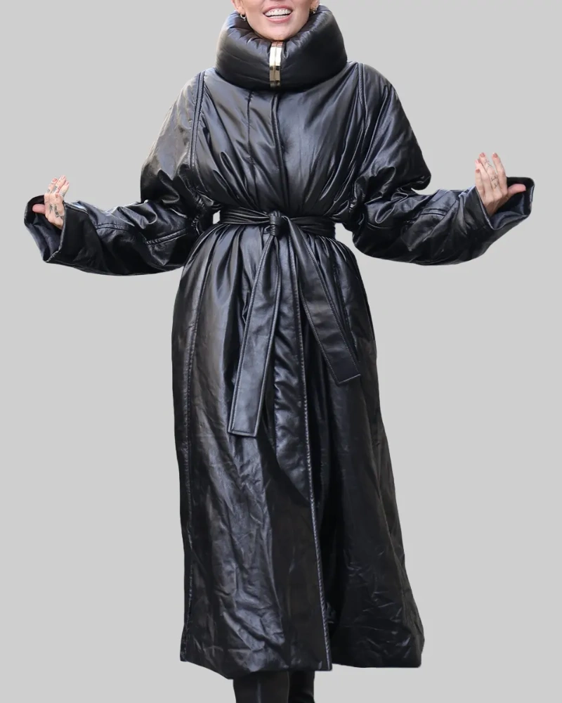 Black Leather Trench Coat Inspired by Miley Cyrus