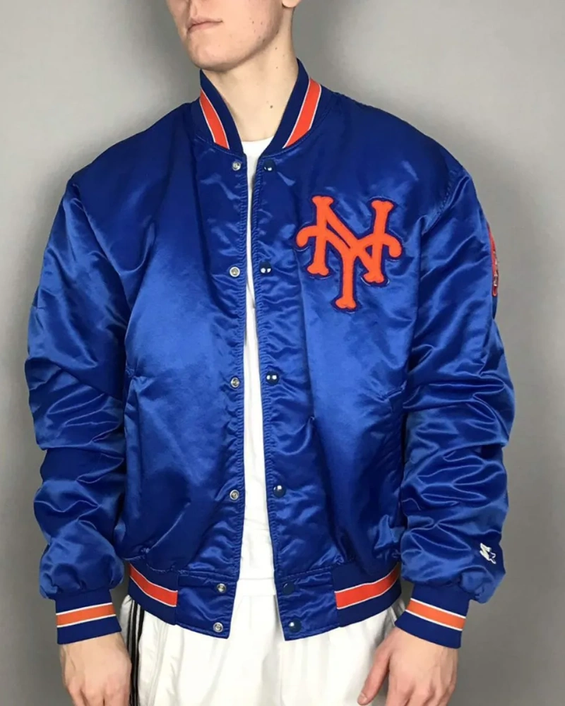 Blue Satin Varsity Jacket for Men & Women