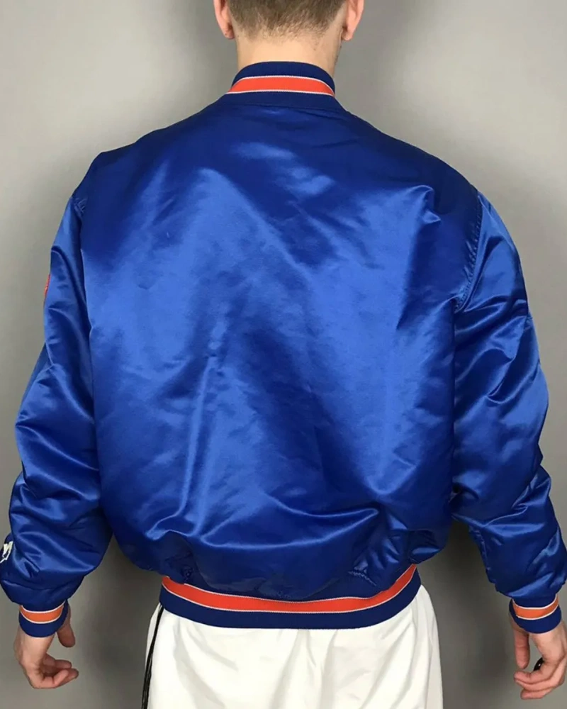 Classic Unisex Blue Satin Varsity Jacket  Clearance Deal