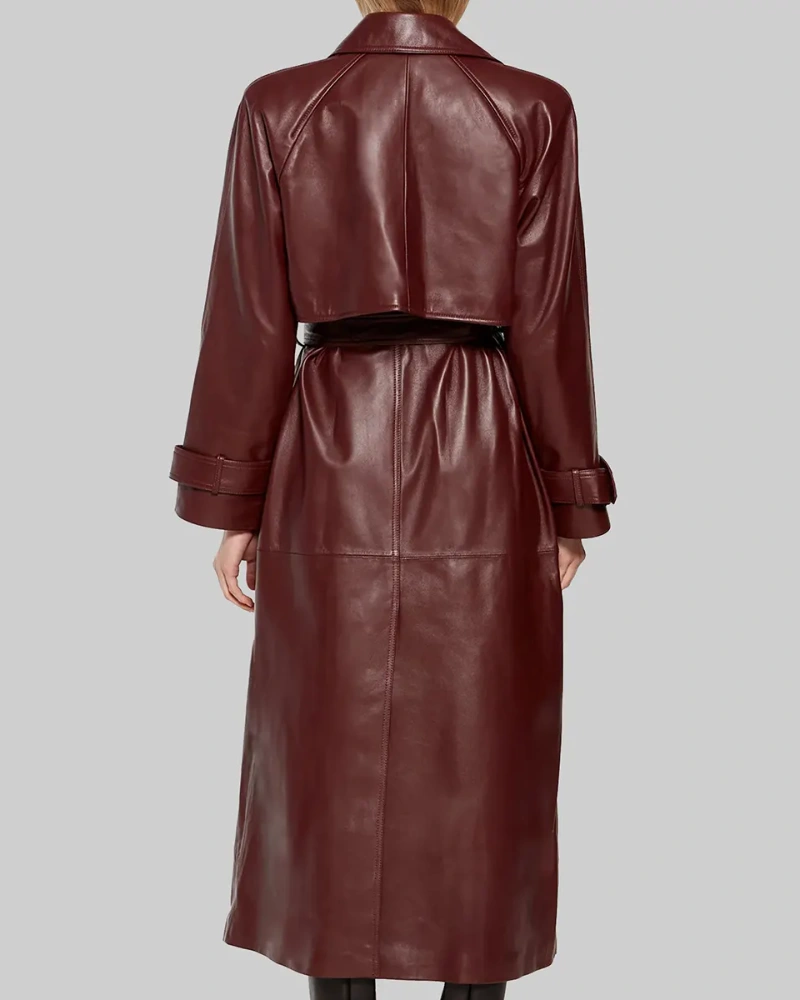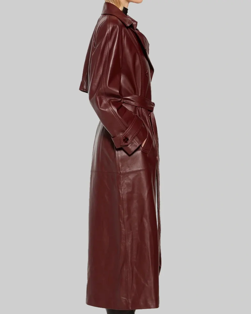 Maroon Leather Trench Coat Inspired by Megan Fox