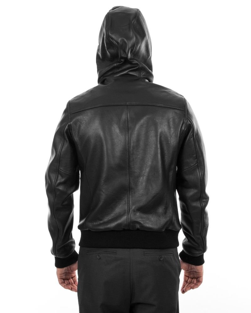 hooded Bomber Jacket handmade Men soft Genuine leather