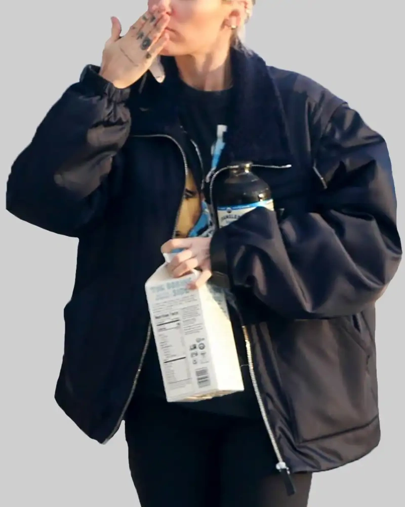 Iconic Black Bomber Jacket Worn by Miley Cyrus