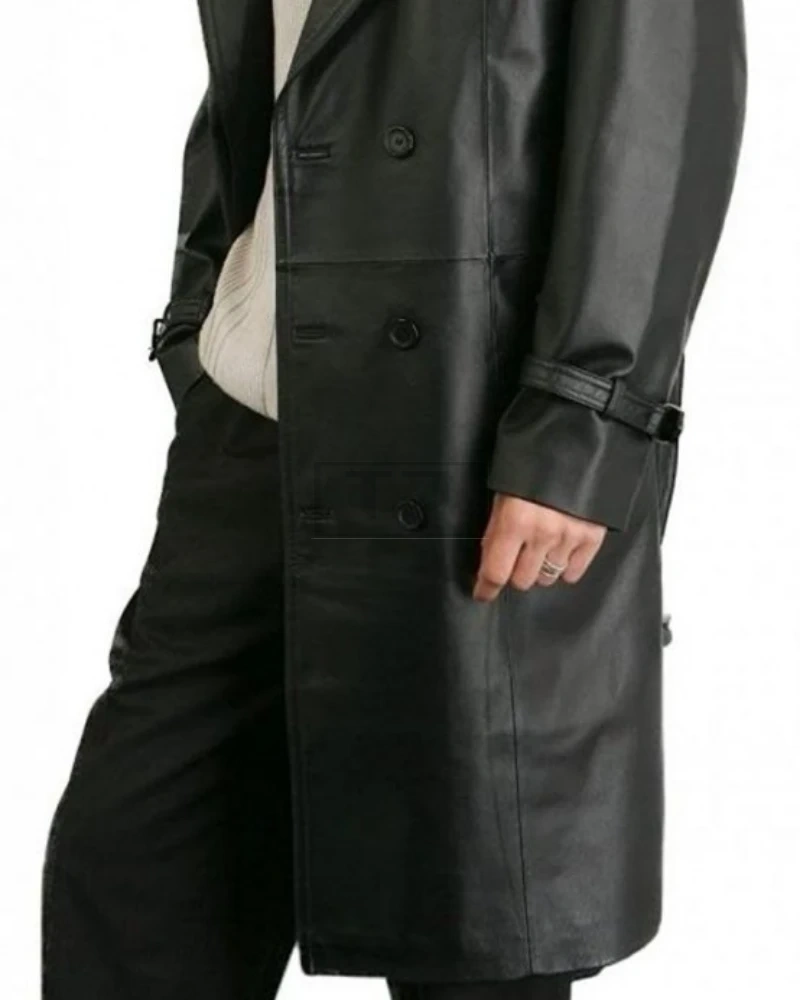 Men Black Faux Leather Overcoat