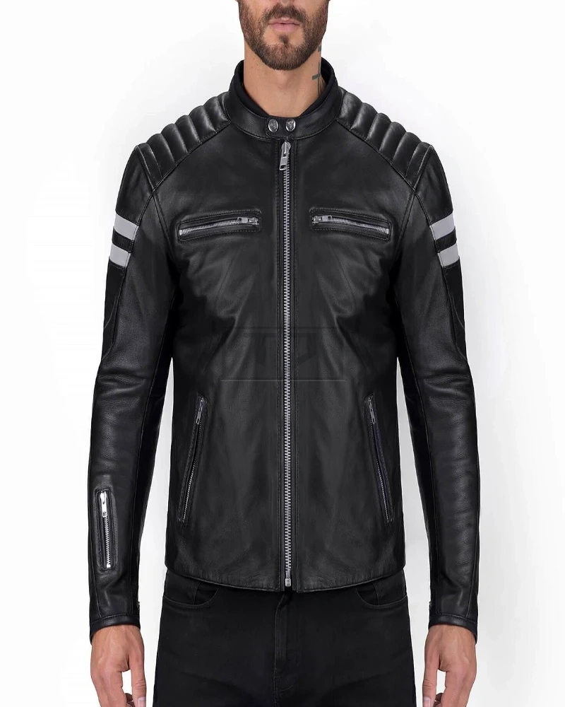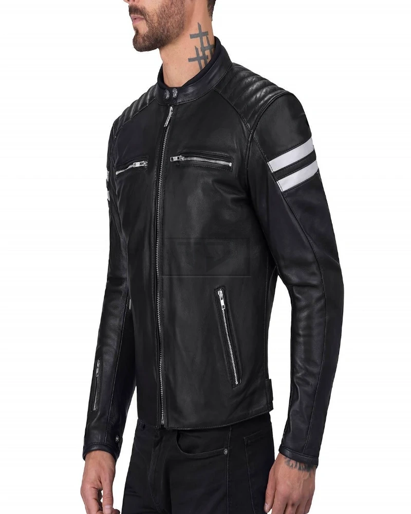 Men Black Jacket With White Strips