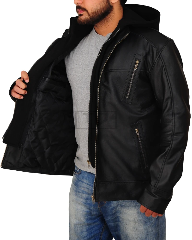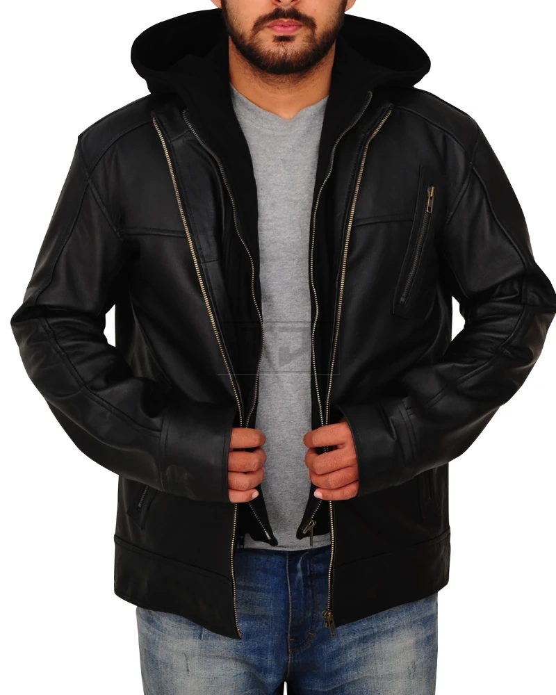 Looking for a stylish and comfortable leather jacket? Look no further than our Men Black Leather Jacket With Hoodie! This jacket is made with high-quality leather and features a hood to keep you warm and protected from the weather. It is also perfect for professional events or everyday use. So why wait? Order your Men Black Leather Jacket With Hoodie today!