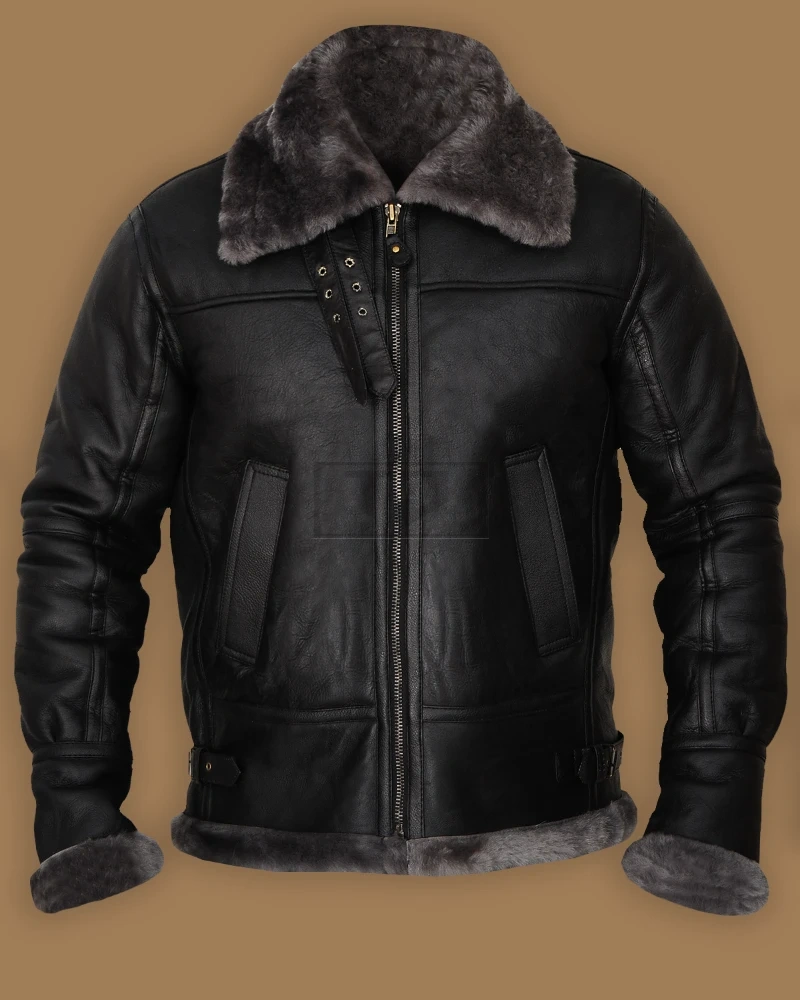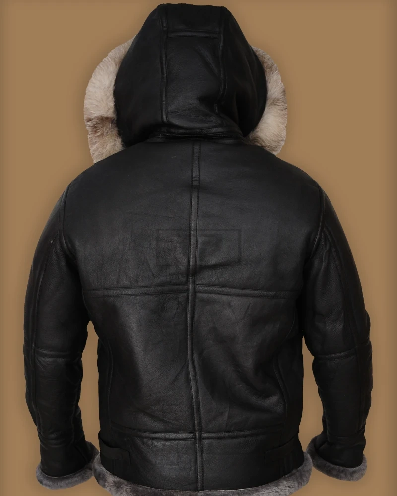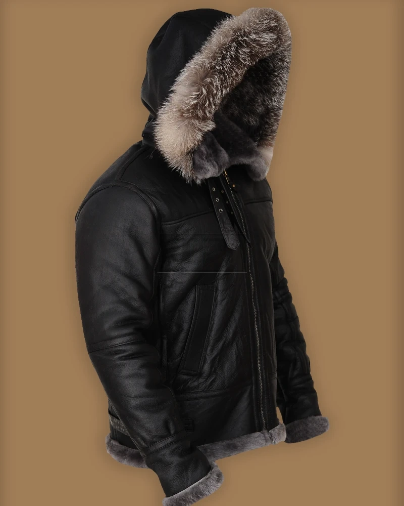 Men Black Shearling Jacket With Hoodie