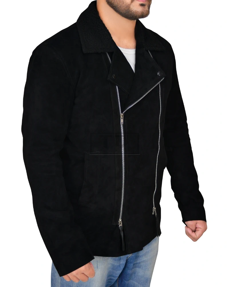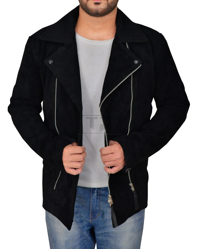 Men Black Suede Biker Jacket
