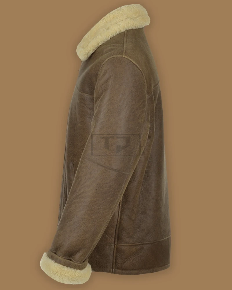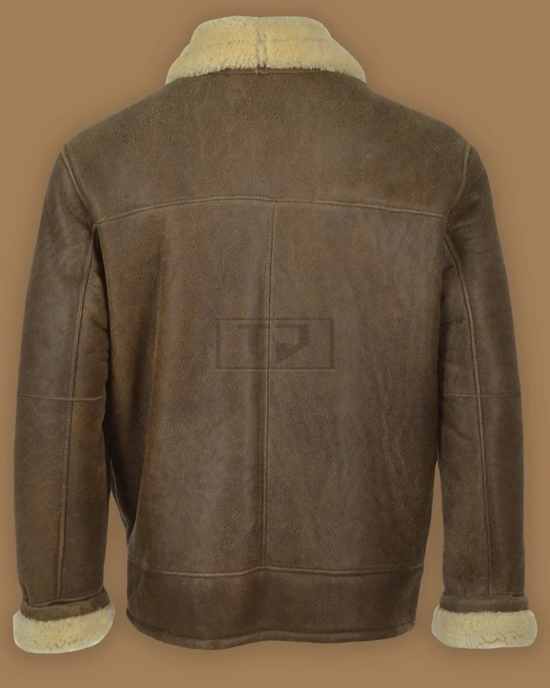 Men Brown Aviator Shearling Leather Jacket - image 3