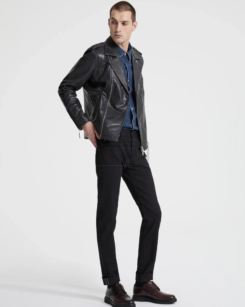 Men Charcoal Black Biker Jacket - image 2