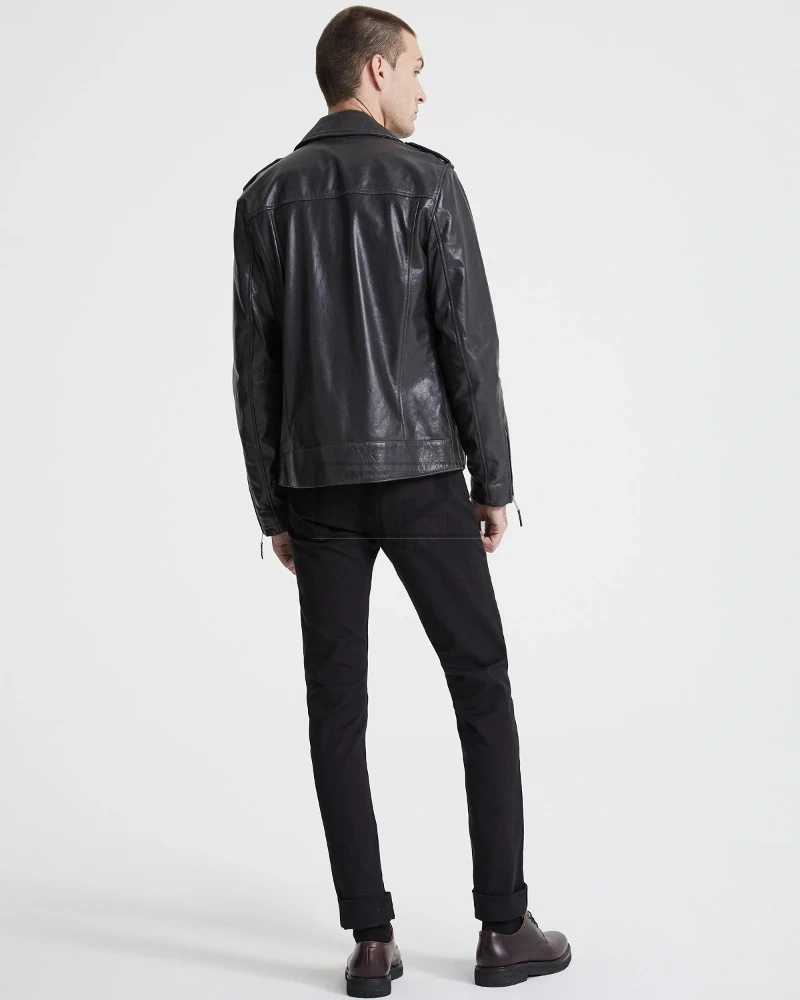 Men Charcoal Black Biker Jacket - image 4