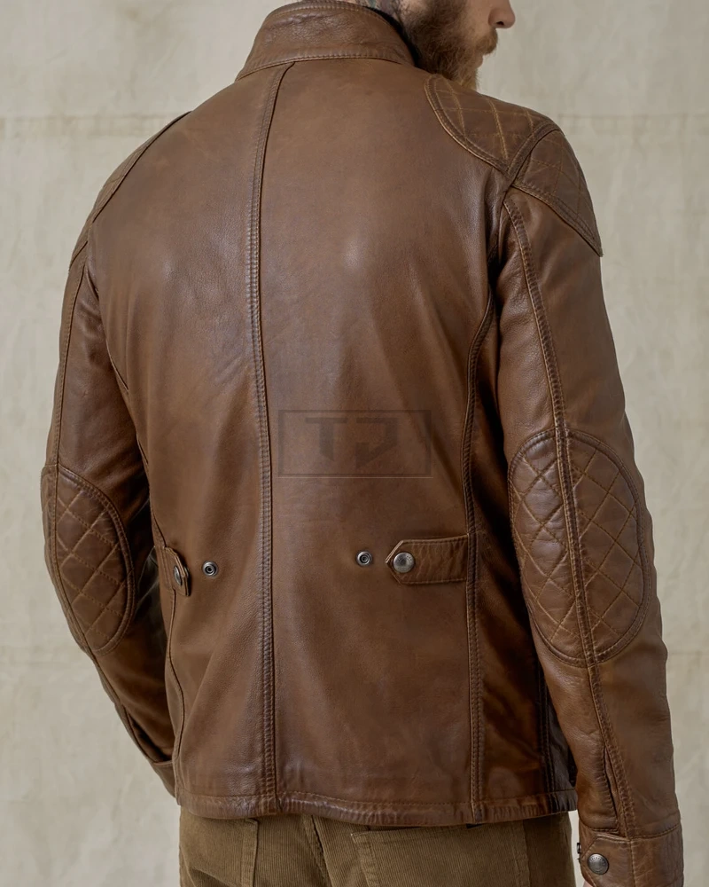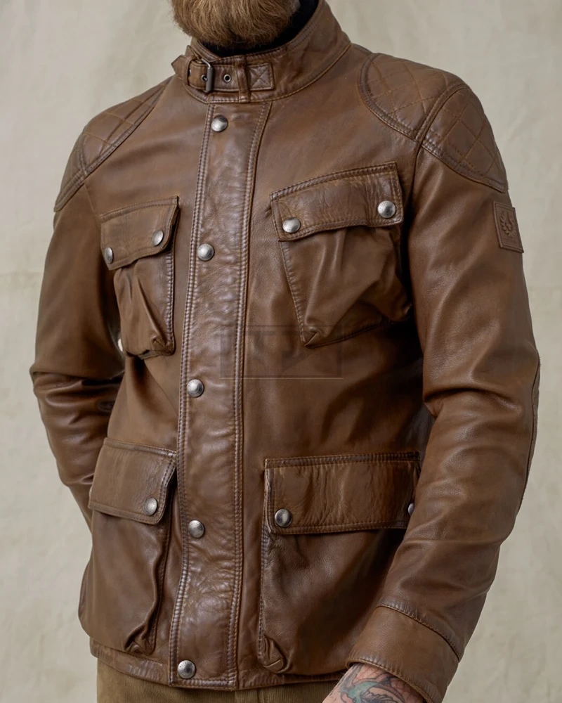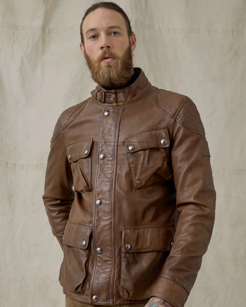 Men Lambskin Leather Field Jacket In Walnut Color