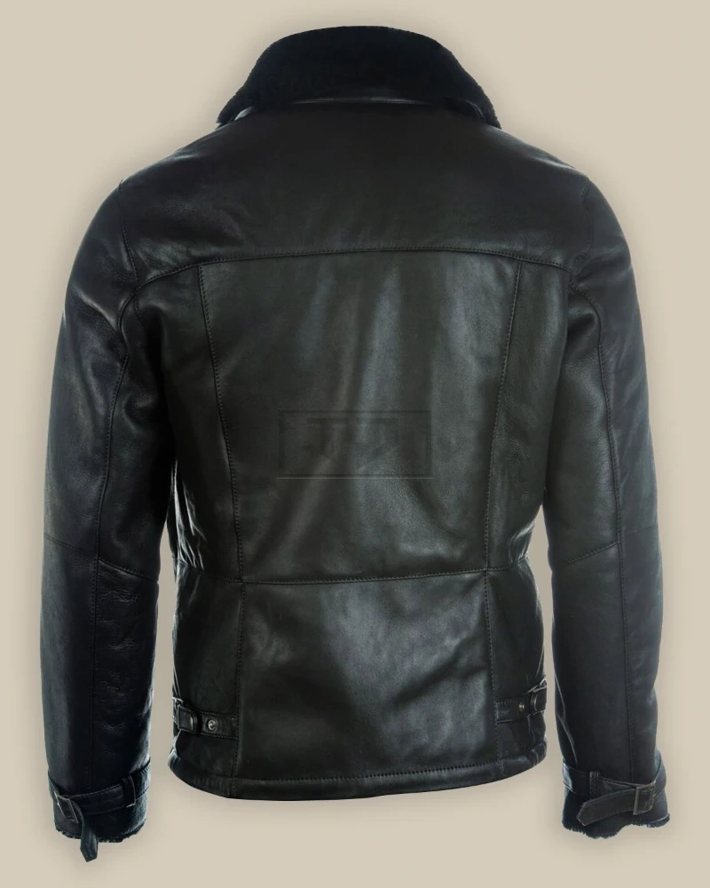 Men Pure Black B3 Shearling Jacket
