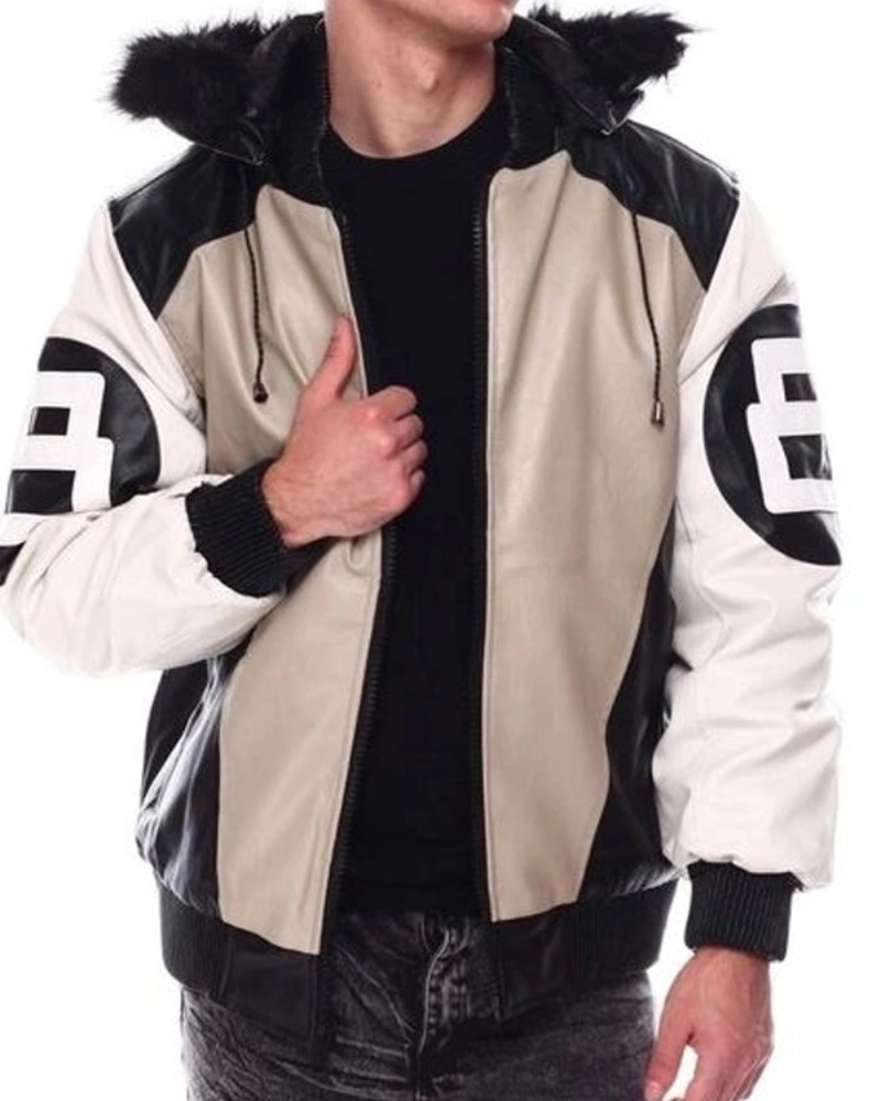 Men’s 8 Ball Sand Leather Jacket Hooded Bomber Outerwear