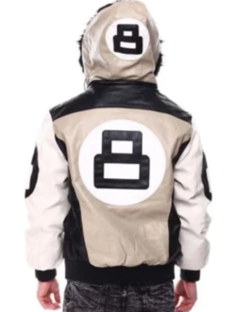 Classic Sand 8 Ball Hooded Jacket  Leather Bomber Design