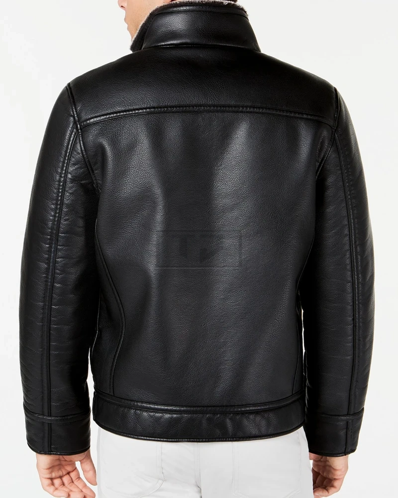 Men's Faux Leather Jacket With Faux Shearling Lining