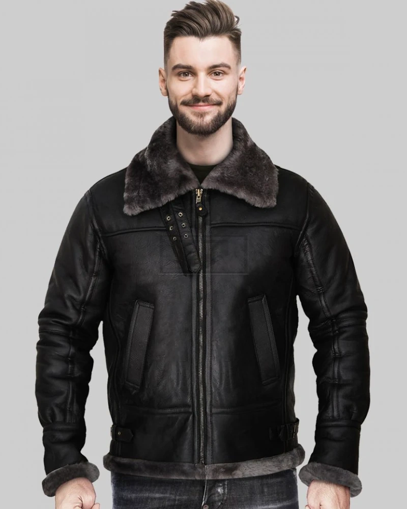 Men's Lavish Black Shearling Jacket With Hoodie - image 3