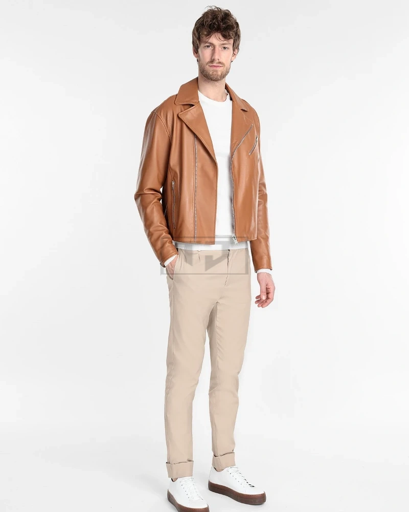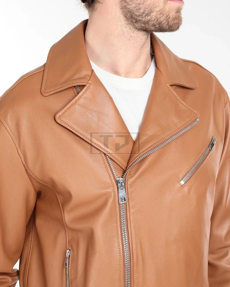 Men Tan Brown Biker Leather Jacket