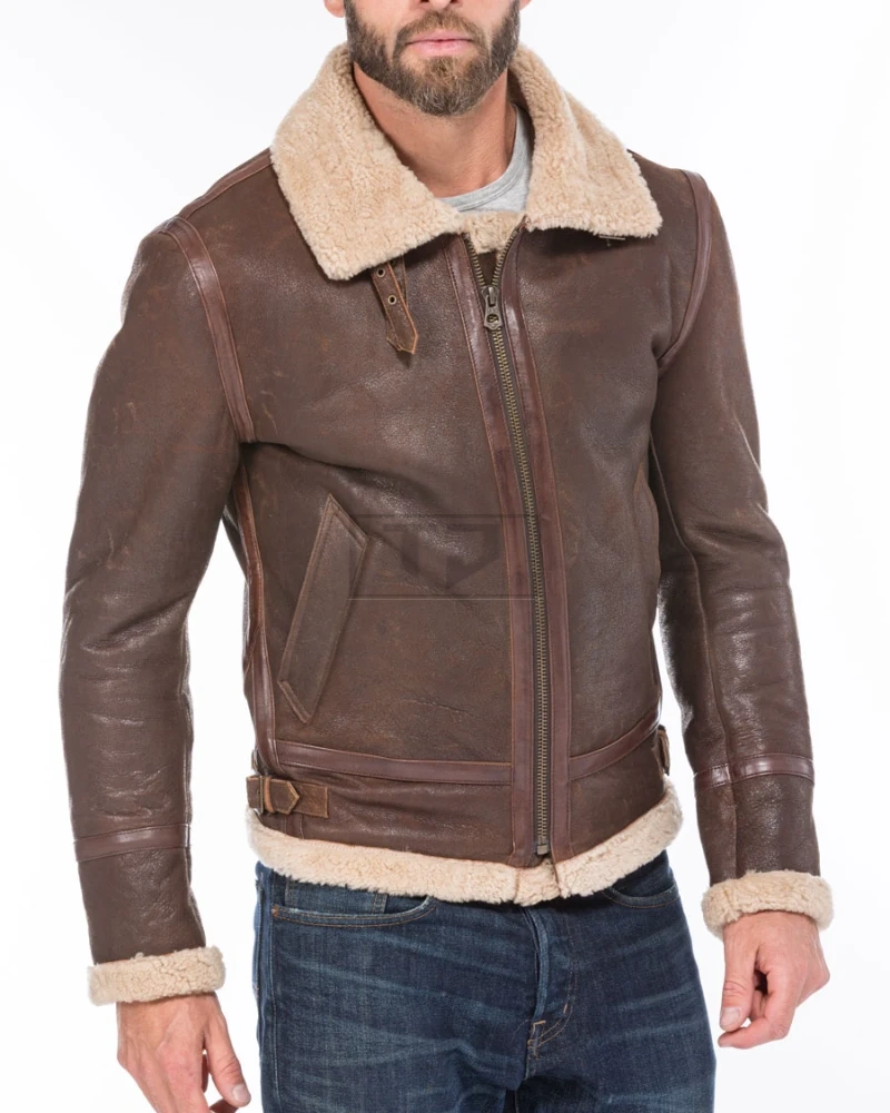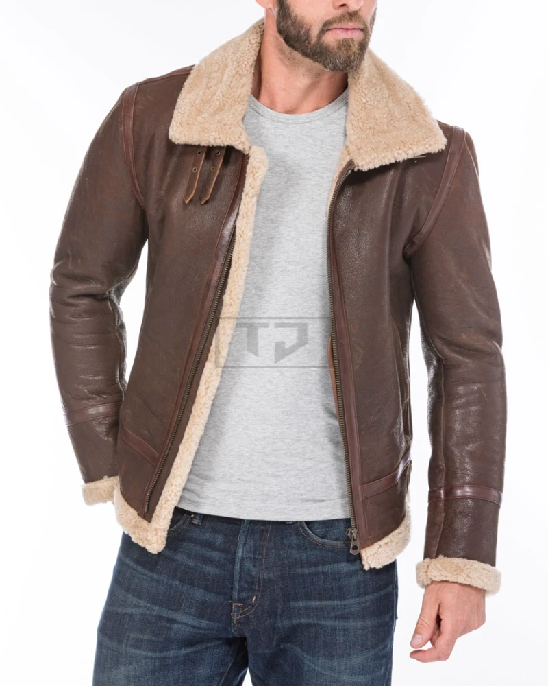 Mens Bomber Shearling Brown Sheepskin Leather Jacket