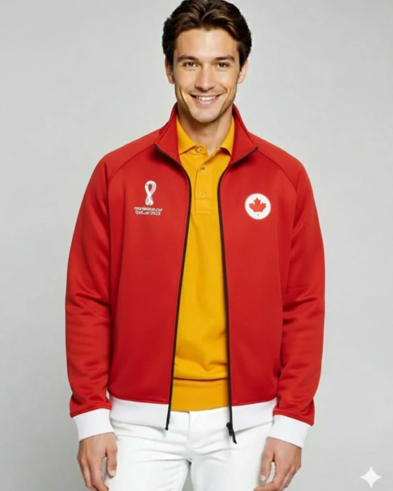 Details: Canada flag emblem on chest, FIFA World Cup logo on opposite side