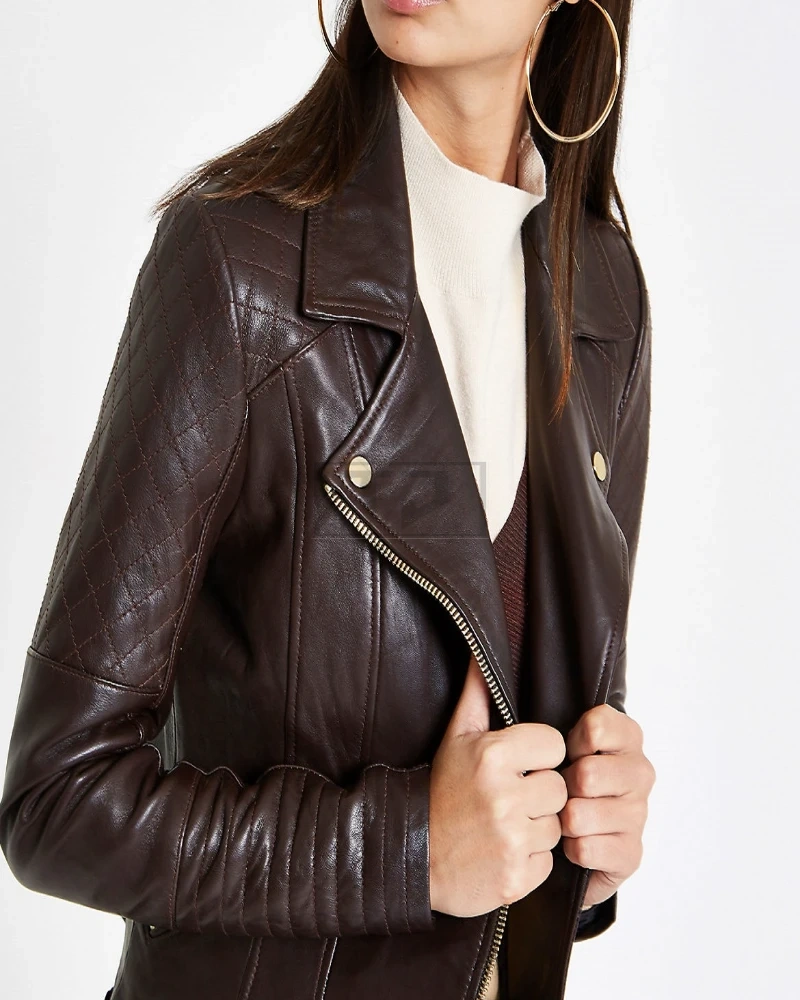 Stylish Women Dark Brown Leather Jacket