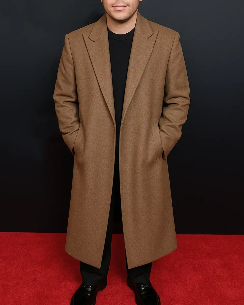 Men’s Brown Wool Coat Inspired by The Weeknd  Stylish Celebrity Outerwear