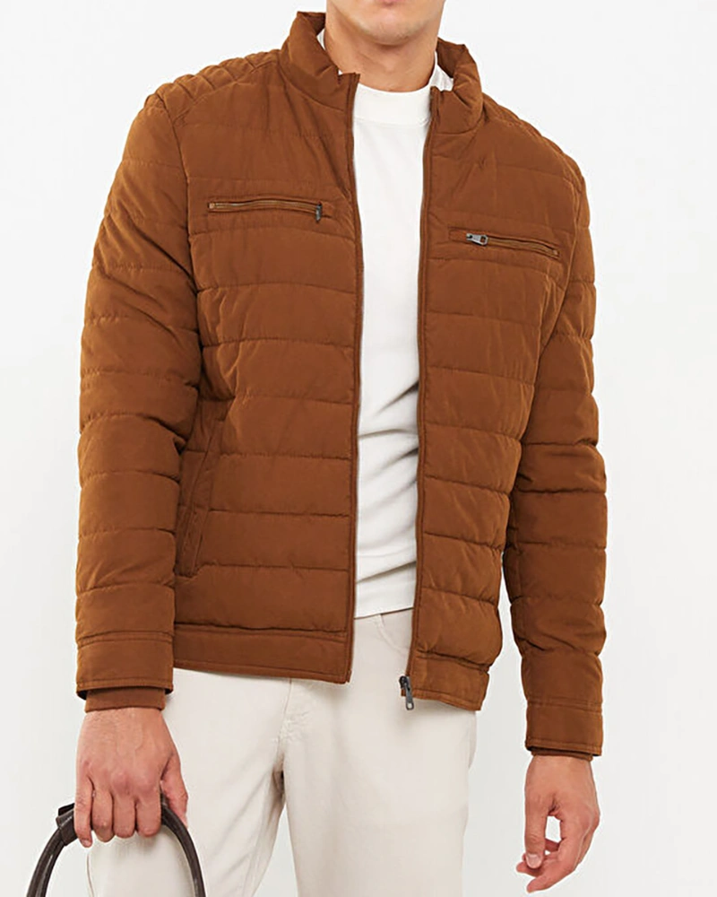 Men’s Cotton Quilted Puffer Jacket  Stylish Western Brown Outerwear