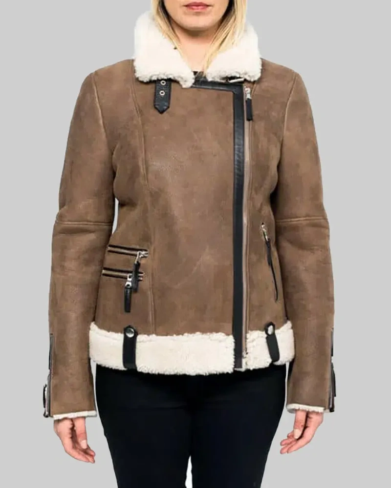 Ximena Brown Shearling Jacket for Women  Timeless Winter Style
