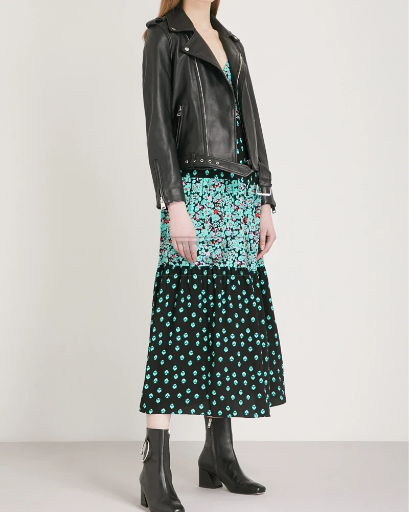 Women ink black leather jacket