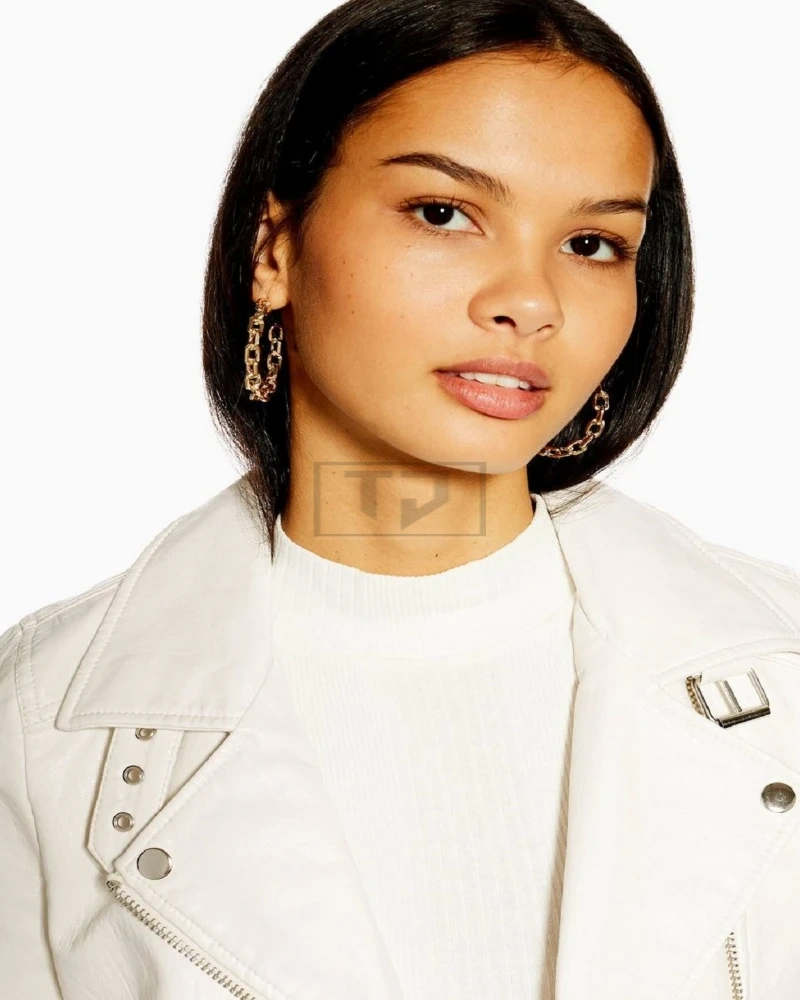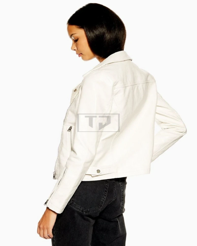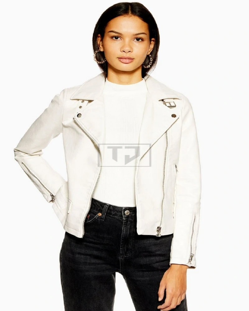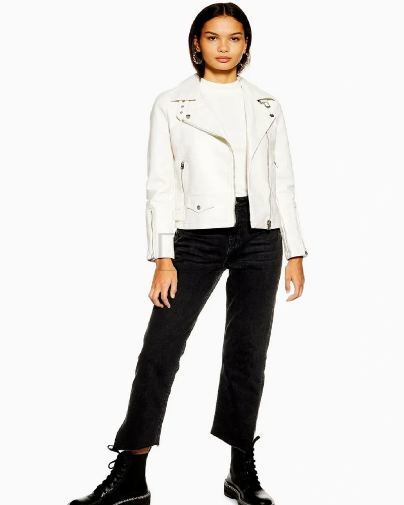 Women White Motorcycle Leather Jacket